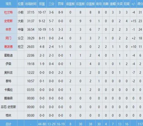 此役杜蘭特31分8板8助3帽,申京24分6板7助2帽,阿門(mén)18分3板7助。