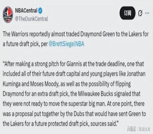 美媒曝勇士?jī)?nèi)幕!傾其所有報(bào)價(jià)字母哥+送追夢(mèng),西部格局險(xiǎn)些改寫