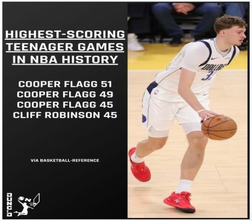 據(jù)美記Nate Duncan統(tǒng)計,青少年球員一共打了10818場比賽,得分前三都屬于弗拉格,分別是51分、49分和45分。