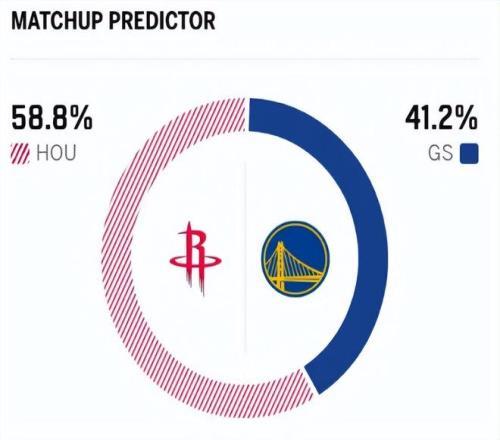 賽前,美媒ESPN對本場比賽進(jìn)行了勝率預(yù)測,火箭隊勝率58.8% ,而勇士勝率則為41.2% ,劣勢明顯 。