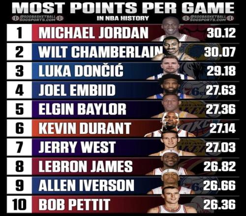NBA場(chǎng)均得分喬丹最高總得分詹姆斯最高到底誰才是歷史第一
