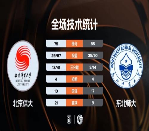 東北師大:范智博21分5板、羅俊翔17分10板、王玖豪14分5板、徐鳴陽9分13板、魏赫一9分9板、彭賀程7分、閆思愷8分