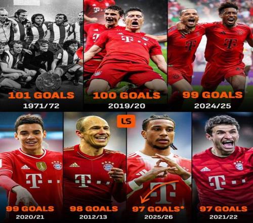這是拜仁隊(duì)史單賽季德甲進(jìn)球紀(jì)錄,2019-20賽季他們打進(jìn)100球,險(xiǎn)些追平的。他們有數(shù)次想要努力破紀(jì)錄失敗這次,他們是真想要努力破了。在主帥孔帕尼手下,拜仁場(chǎng)均進(jìn)球達(dá)到3.6個(gè),效率排名德甲歷史第一的。