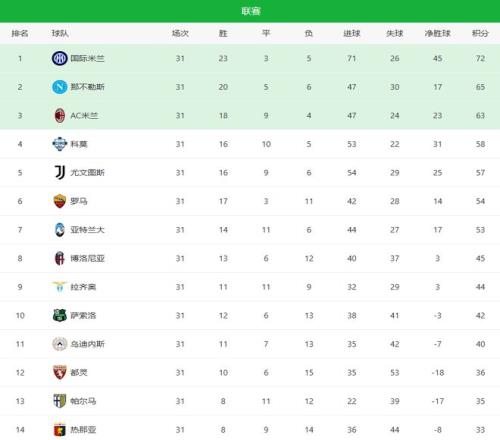 北京時(shí)間4月7日凌晨,意甲第31輪,真正進(jìn)入“刺刀見紅”的階段。法布雷加斯率領(lǐng)的科莫客場(chǎng)0-0戰(zhàn)平烏迪內(nèi)斯,繼續(xù)霸占積分榜第四;尤文圖斯主場(chǎng)2-0拿下熱那亞,依舊為歐冠席位苦苦追分;亞特蘭大3-0客場(chǎng)完勝萊切,后者依舊排在倒數(shù)第三,保級(jí)壓力山大;那不勒斯1-0絕殺AC米蘭,波利塔諾打入全場(chǎng)唯一進(jìn)球,這樣一來,國(guó)際米蘭以7領(lǐng)跑積分榜。