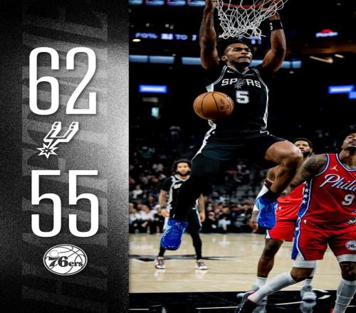 馬刺隊的卡斯爾得到三雙19分、11個籃板和13次助攻,文班亞馬得到17分和5個籃板,他因傷提前退場。哈珀得到17分和4次助攻,約翰遜得到13分和9個籃板,??怂沟玫?3分和4次助攻,科內特得到10分。76人隊的恩比德得到34分和12個籃板,喬治得到16分、5個籃板和4次助攻,馬克西得到15分和8次助攻,埃奇庫姆得到14分和7個籃板。