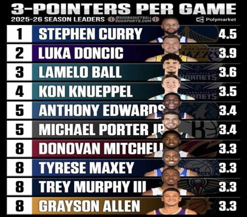 很多人覺得NBA現(xiàn)在的三分球已經(jīng)“泛濫”了,誰都能投,誰都能進(jìn)。但如果你仔細(xì)盯著這份榜單看,你會(huì)發(fā)現(xiàn)一個(gè)讓人絕望的事實(shí):38歲的庫里依然站在大氣層,而底下一群正值巔峰的天才少年,拼盡全力也只能看到他的尾燈。這不只是準(zhǔn)不準(zhǔn)的問題,而是關(guān)于“產(chǎn)量”與“效率”如何在頂級(jí)防守下共存的終極命題。更讓人意外的是,真正威脅到這群大佬地位的,竟然是一個(gè)名不見經(jīng)傳的“狠人”。(數(shù)據(jù)截至北京時(shí)間2025年3月27日)