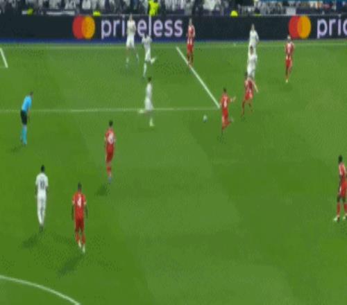 第89分鐘,奧利塞右路內(nèi)切傳中,阿方索-戴維斯回敲,穆西亞拉勁射打偏,皇馬差點再丟一球。