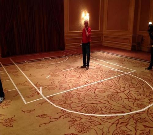 不過是酒店地板上的幾卷膠帶,一群穿著拖鞋的球員。對于一位超級球星而言,這真的是一個非常低調(diào)的要求。