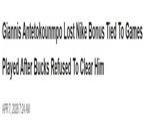 北京時(shí)間4月8日,名記Shams報(bào)道稱,據(jù)多位消息人士透露,密爾沃基雄鹿在賽季末決定不讓字母哥出場(chǎng),讓他在場(chǎng)外也遭受了重大經(jīng)濟(jì)損失。雄鹿讓這位招牌球星休戰(zhàn)的決定,直接導(dǎo)致他沒能拿到耐克代言合同里一筆大額獎(jiǎng)金——該條款要求他本賽季至少出戰(zhàn)41場(chǎng)。