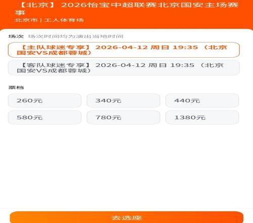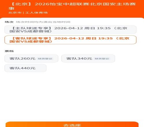 4月8日10:00,2026賽季中超聯(lián)賽第5輪北京國(guó)安主場(chǎng)與成都蓉城的比賽,正式開(kāi)票。按說(shuō)這是御林軍與領(lǐng)頭羊之間的強(qiáng)強(qiáng)對(duì)話(huà),球票應(yīng)該非?;鸨?個(gè)小時(shí)后,售票平臺(tái)的信息顯示,北京工人體育場(chǎng)主隊(duì)區(qū)域各檔次的球票,都還有售,倒是客隊(duì)成都蓉城區(qū)域3個(gè)檔次的球票,有2個(gè)檔次已經(jīng)售罄。