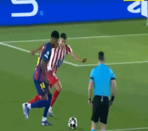 開場(chǎng)后巴薩攻勢(shì)兇猛。第4分鐘,亞馬爾送出傳球,拉什福德禁區(qū)內(nèi)射門被馬競門將穆索倒地?fù)醭觥?/p>