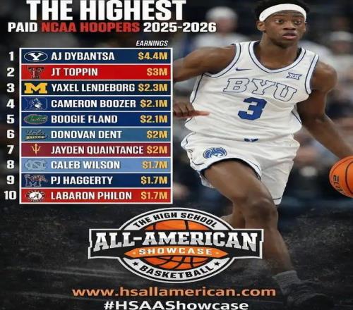 在NIL時代,頂尖NCAA球員的年收入可達(dá)數(shù)百萬美元,據(jù)《體育畫報》在2025年7月的報道,2026年選秀狀元大熱,楊百翰大學(xué)前鋒AJ·迪班薩的NIL估值已達(dá)410萬美元。再加上他和紅牛以及耐克的合同,年收入近千萬美元。這一收入,將比半數(shù)NBA球員的年薪還要高。