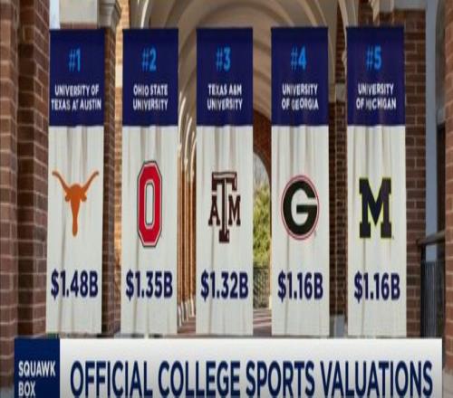 2025年,據(jù)CNBC統(tǒng)計,75所美國高校體育項目總價值達(dá)512.2億美元,其中位列第一的是德克薩斯大學(xué)奧斯汀分校,估值達(dá)14.8億美元。