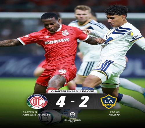 體育播報4月9日宣 中北美冠軍杯1/4決賽首回合比賽,洛杉磯銀河客場2-4不敵托盧卡。