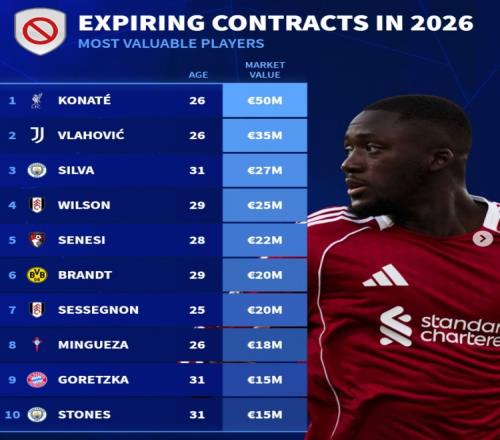 今夏合同到期球員身價榜:歐元