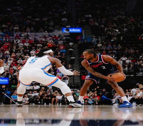 雷霆過(guò)去6場(chǎng)收獲6連勝,快船過(guò)去兩場(chǎng)連贏國(guó)王與獨(dú)行俠收獲2連勝,本賽季前兩次交鋒雷霆均大勝快船。本場(chǎng)快船缺少比爾、杰克遜,雷霆缺少索伯。首節(jié)開局雷霆攻防壓制取得12-5領(lǐng)先優(yōu)勢(shì),霍姆格倫持續(xù)內(nèi)外開花得分,引領(lǐng)雷霆逐步擴(kuò)大27-12領(lǐng)先優(yōu)勢(shì)??齑鼐匆徊?-2攻勢(shì)追分,雷霆連得5分,快船再追2分,首節(jié)結(jié)束雷霆34-23領(lǐng)先快船。首節(jié)雷霆19中13,其中三分6中3,霍姆格倫6中5得到14+3與亞歷山大6分5助攻;快船26中9,其中三分9中4,萊昂納德8中3命中2記三分得到8分,大洛佩茲、鄧恩與馬瑟林合計(jì)8中0得到0分。