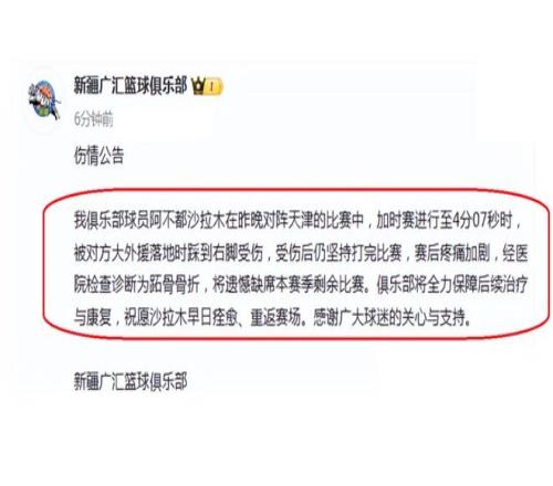 突發(fā)!阿不都沙拉木意外重傷,本賽季提前報銷