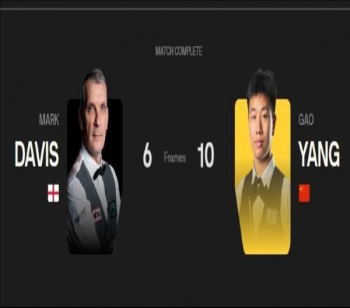 最終,高陽以10-6戰(zhàn)勝馬克·戴維斯晉級,將在下一輪迎戰(zhàn)湯姆·福德。