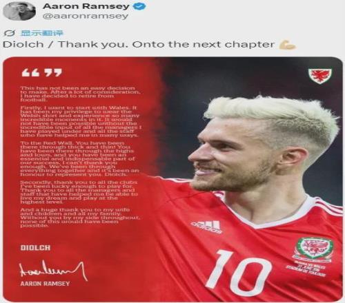 官方:阿森納傳奇拉姆塞宣布退役。