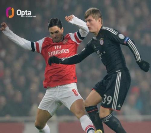 Opta統(tǒng)計(jì),阿森納以下四項(xiàng)數(shù)據(jù)是本賽季歐冠球隊(duì)中最好的: