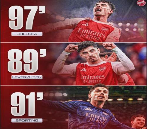 哈弗茨最近代表阿森納打進(jìn)的三粒進(jìn)球,全部是左右比賽結(jié)果的絕殺(或絕平):