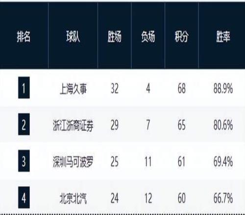 上海17連勝鎖定第一,黑馬鞏固第3,4隊(duì)爭第4,廣東占優(yōu),遼寧第9