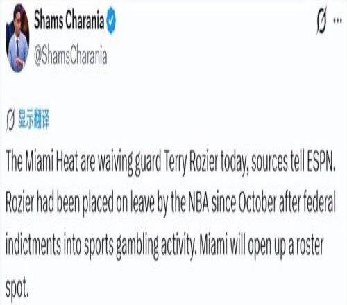 北京時(shí)間4月10日,據(jù)名記Shams證實(shí),不出所料,熱火將在常規(guī)賽結(jié)束前裁掉后衛(wèi)特里-羅齊爾。