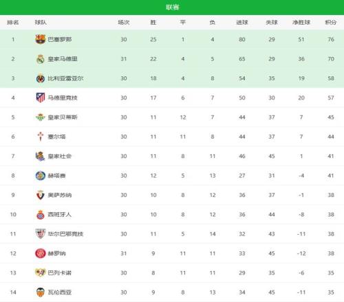 隨著皇馬11爆冷+羅馬30!西甲意甲最新積分榜巴薩國(guó)米奪冠在望