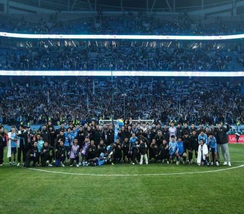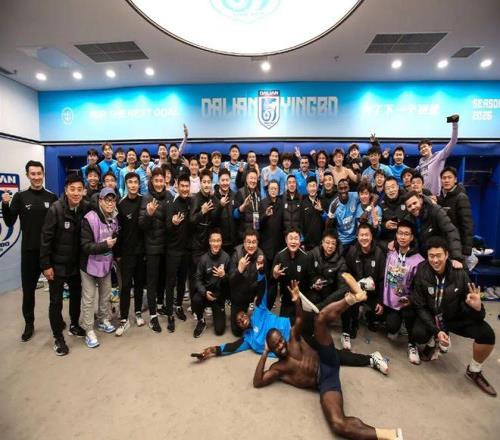 在謝場環(huán)節(jié),英博全體將士與大連球迷再次唱響“莎啦啦”。