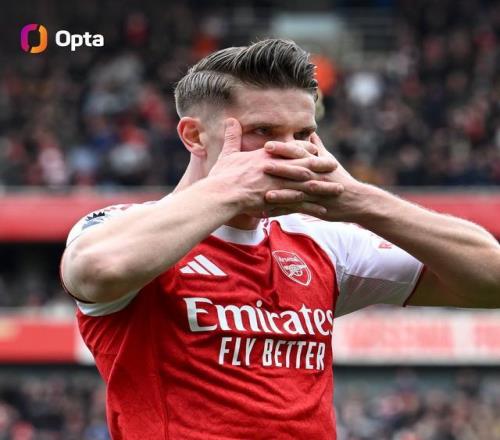 至此,哲凱賴什本賽季各項賽事已經打入18球——在英超時代(自1992-93賽季以來)只有亨利在1999-00賽季(26球)和桑切斯在2014-15賽季(25球)在阿森納首秀賽季的進球數更多。