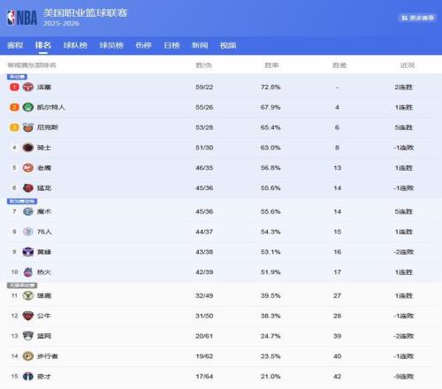 隨著NBA25-26賽季常規(guī)賽第81輪結(jié)束,NBA排名上再度發(fā)生了變化,并且確定了很多排名!目前,東西部前10一共有10支隊伍鎖定了排名,其他的懸念是湖人掘金搶西部第3,東部猛龍-魔術(shù)、76人搶最后一個季后賽名額,這是NBA常規(guī)賽現(xiàn)在留下的懸念!