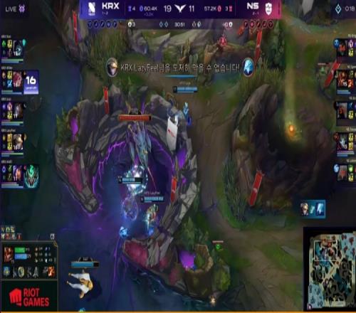 【19:20】NS在對(duì)手F6區(qū)域抓到了Lazyfeel的伊澤瑞爾,但是下路的Kingen杰斯也送了,想救人的Sponge皇子買一送一了!拿下小龍的KRX繼續(xù)追擊,Lazyfeel的伊澤瑞爾復(fù)活給大打出了Lehends的冰鳥(niǎo)蛋!鏡頭一轉(zhuǎn)NS先手開(kāi)團(tuán)結(jié)果Sponge皇子再次白給,Kingen杰斯復(fù)活下路推線隨后又被KRX三人逮捕,戰(zhàn)績(jī)來(lái)到0-4!這幾波連續(xù)節(jié)奏相當(dāng)于KRX打了一波1換3,再一波0換2!