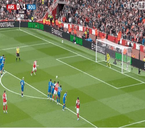 第74分鐘,埃瓦尼爾森禁區(qū)前一墊,斯科特突入禁區(qū)破門,阿森納1-2落后伯恩茅斯。