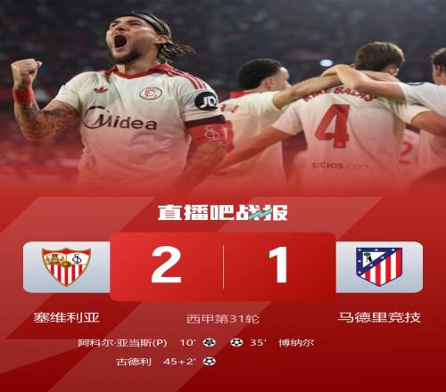 博納爾首秀破門,塞維利亞2-1戰(zhàn)勝馬競(jìng)。塞維利亞取得近6輪聯(lián)賽首勝,積34分逃離降級(jí)區(qū)。