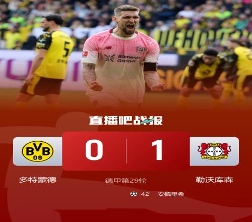 安德里希遠(yuǎn)射破門,最終多特主場(chǎng)0-1不敵勒沃庫森。