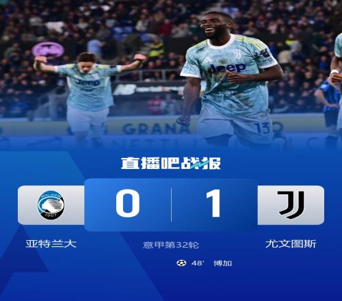 博加破門制勝,尤文1-0亞特蘭大。積分榜方面,尤文60分先賽暫升第四,亞特蘭大53分第七。