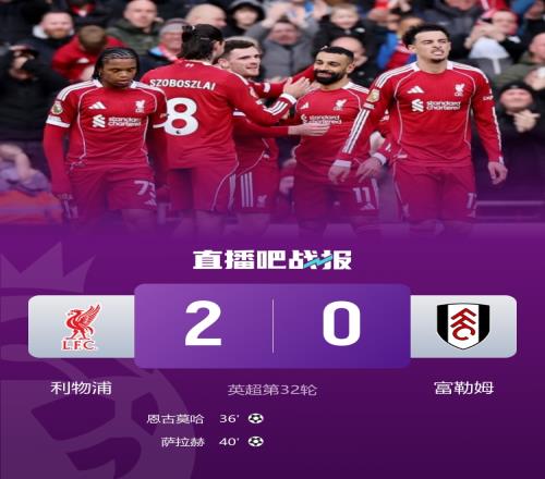 恩古莫哈精彩兜射破門,薩拉赫建功,利物浦主場(chǎng)2-0擊敗富勒姆,終結(jié)各項(xiàng)賽事3連敗。