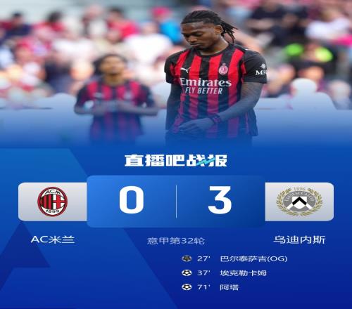 巴爾泰薩吉烏龍,AC米蘭0-3不敵烏迪內(nèi)斯。