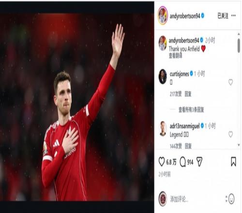 賽季末將離隊(duì)!羅伯遜社媒曬謝場照片:謝謝你,安菲爾德