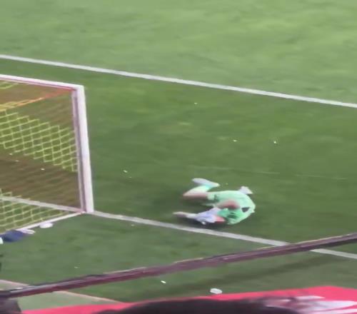 比賽過(guò)程中,費(fèi)內(nèi)巴切門(mén)將埃德松一度被看臺(tái)上主場(chǎng)球迷扔下的異物擊中面部,劃傷了眉角,這使他痛苦倒地。