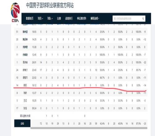 司職場上離籃筐最近的位置,郭凱本場卻投出了5中0的表現(xiàn),是隊內(nèi)唯一一個有投籃出手,但沒有命中成球員。
