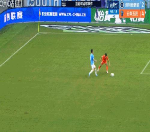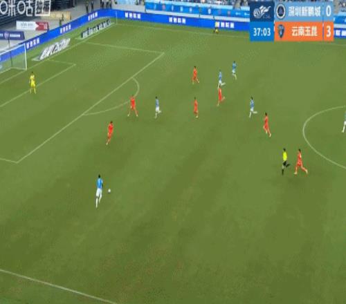 上半場補時第45+2分鐘,韋斯利再送助攻,卡爾采夫轟出一腳世界波,新鵬城將比分扳為2-3!