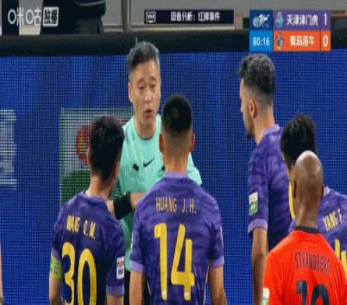 第81分鐘,黃嘉輝踩踏吃到第二張黃牌,被紅牌罰出場,津門虎十人應戰(zhàn)