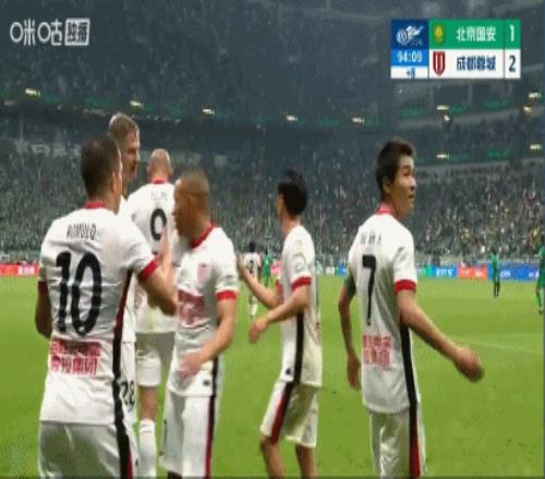 補時階段第90+4分鐘,韋世豪接隊友右路過頂傳球,冷靜施射破門,上演絕殺!成都2-1!
