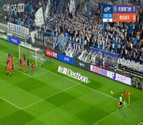第77分鐘,海牛后衛(wèi)解圍失誤,謝蒂內打門折射入網(wǎng),津門虎1-0領先海牛!