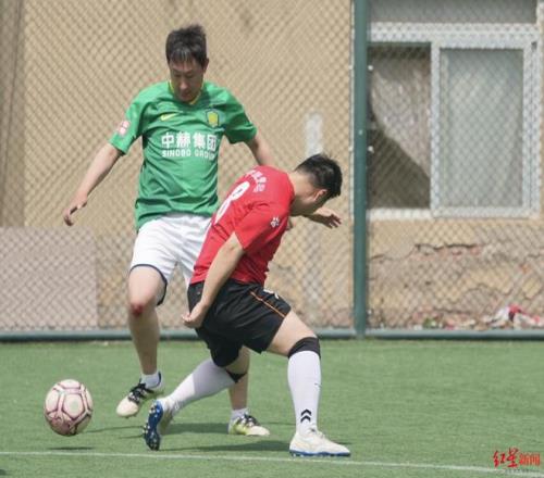 今天中午,在距離工體20公里的北京聚加球場(chǎng),另一場(chǎng)“紅綠大戰(zhàn)”也在進(jìn)行中——為了增進(jìn)雙方球迷的友誼,中超北京賽區(qū)和成都蓉城足球俱樂(lè)部特地組織了北京、成都的球迷在這里舉行了一場(chǎng)友誼賽,共有三十多位球迷參與了這次活動(dòng)。當(dāng)來(lái)自北京和成都的球迷穿著各自主隊(duì)的球衣,在綠茵場(chǎng)上以普通足球愛(ài)好者的身份奔跑、拼搶和歡笑時(shí),足球也回歸到它最本真的模樣。