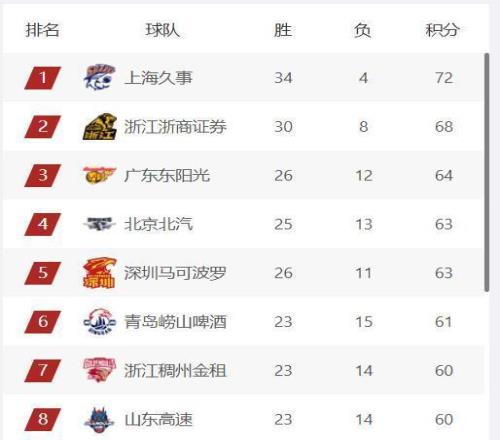 上海隊(duì)殘陣勝首鋼,廣東隊(duì)雙殺廣廈,CBA常規(guī)賽前4基本確定