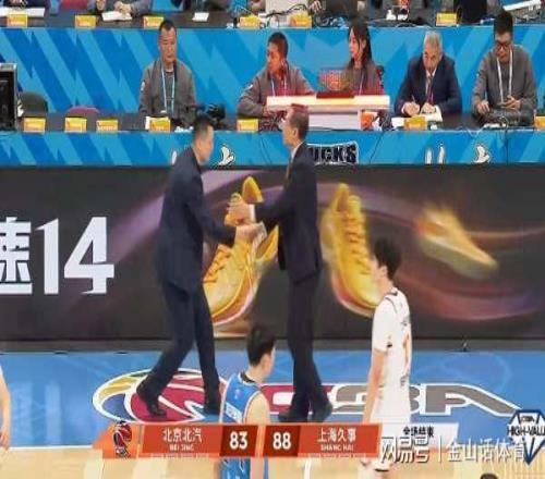 83比88,當(dāng)比賽曲終哨響,北京主帥許利民,無(wú)奈瞥了一眼電子記分牌,遂走向中場(chǎng),與迎面走來(lái)的上海主帥盧偉握手致意。贏球后盧偉,彎躬著身子,彰顯出晚輩的謙卑和禮節(jié)……