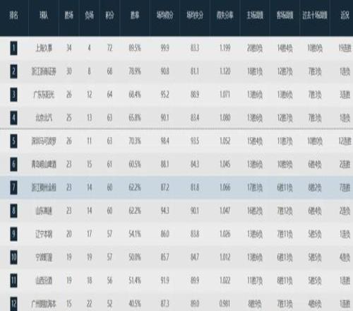 作為本賽季最有統(tǒng)治力的隊(duì)伍,上海隊(duì)迄今為止場(chǎng)均得分(99.9)、籃板(43.4)、助攻(23.9)、三分命中率(39.3%)、投籃命中率(52.8%)、投籃命中數(shù)(36.8)、百回合得分(126.5)、百回合失分(105.5)、百回合凈勝分(21.1)、有效命中率(59.9%),以及籃下命中率(73%)均高居聯(lián)盟榜首。