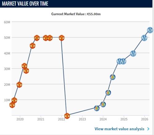 24歲的格林伍德目前德轉(zhuǎn)身價5500萬歐,創(chuàng)造生涯新高,這一身價在法甲排名第11,是除巴黎球員外的最高身價。